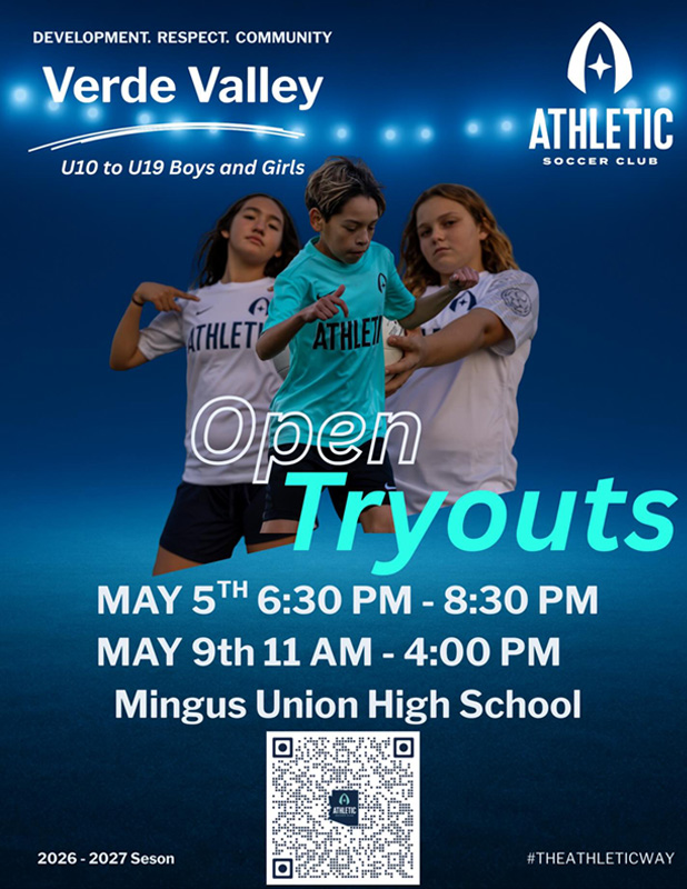 For players in the Verde Valley area, we will be hosting tryouts on May 17th. We would love to see everyone in the area come out and give us a look.